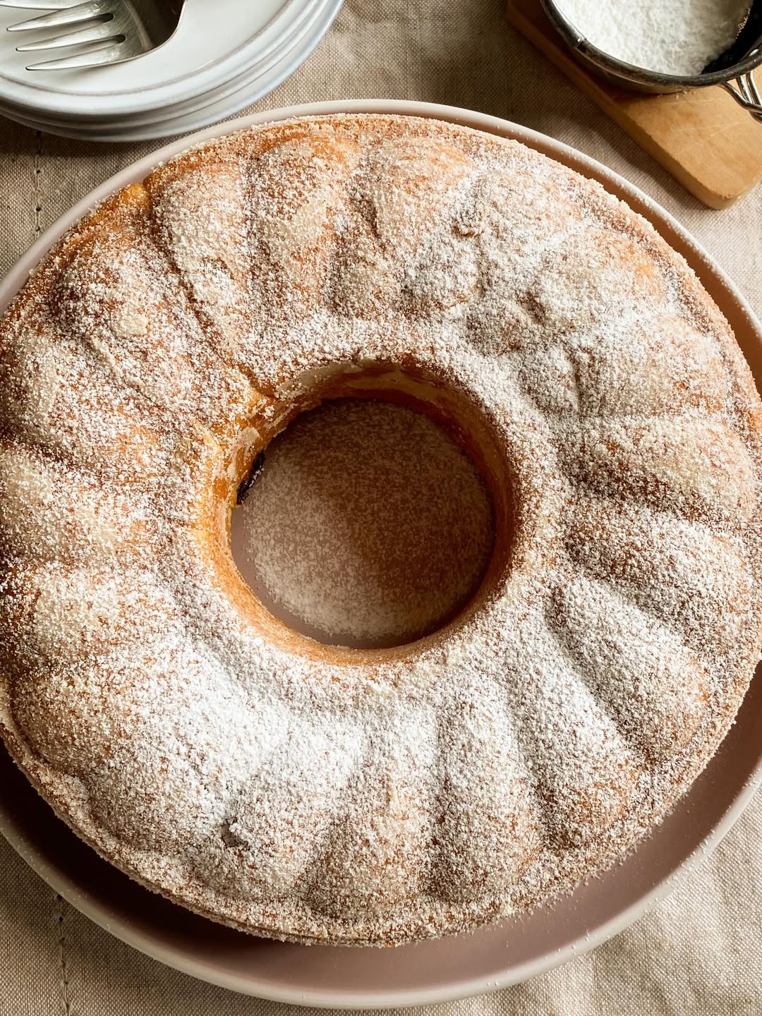 - Dokončenie:Nechaj vychladnúť, vyklop z formy a jemne posyp práškovým cukrom.
